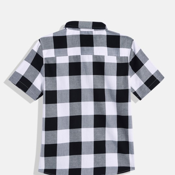 Black & white checked opaque Casual shirt ,has a spread collar, button placket, 1 patch pocket, short regular sleeves, curved hem